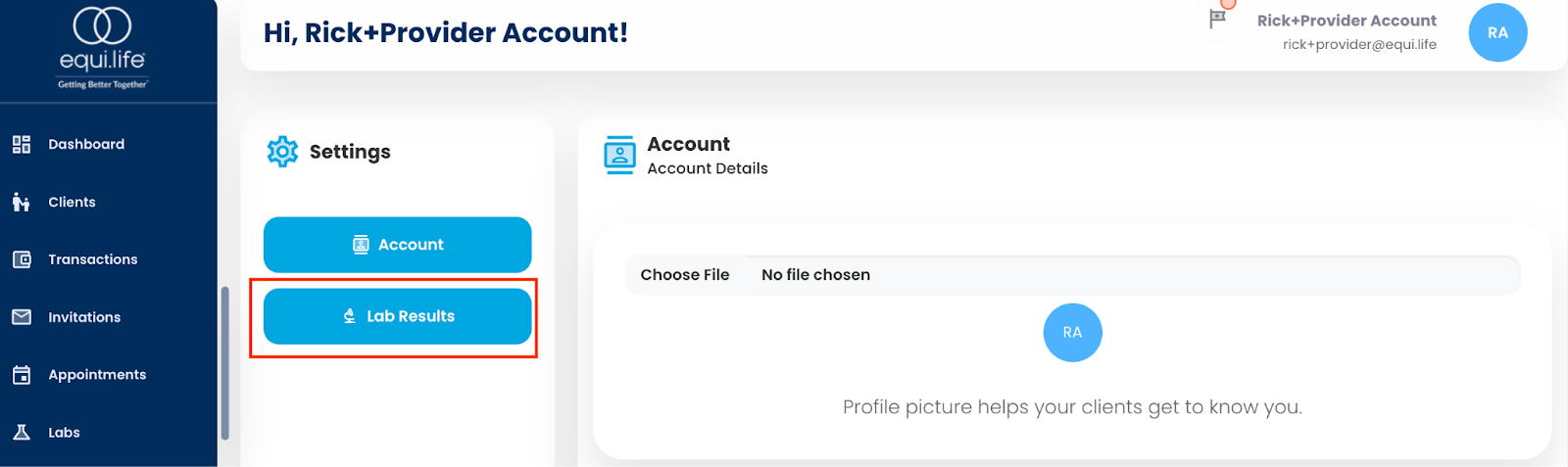 ● When client lab results are received by EquiLife, the client will be notified that they have