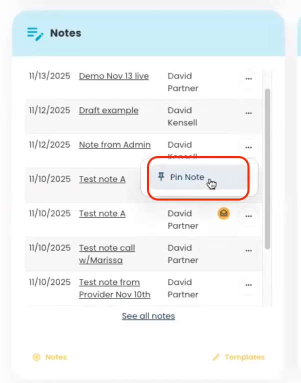 By pinning a note, it keeps it at the top of a User's Note card. This can be used to document important things about a client, for example - "Client is vision impaired and requests phone call only".